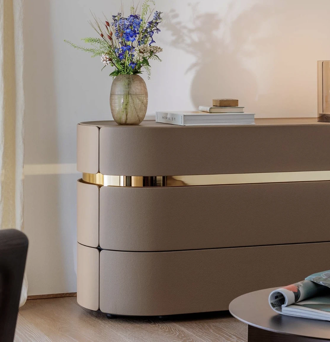 Unutarnji elementi kolekcije nadovezuju se na osnovne komade kroz istu dosljednost dizajna i materijala. Ormarići, noćni ormarići i stolići oblikovani su s pažnjom prema proporciji i detalju, stvarajući uravnotežen odnos između praktične funkcije i estetske čistoće.