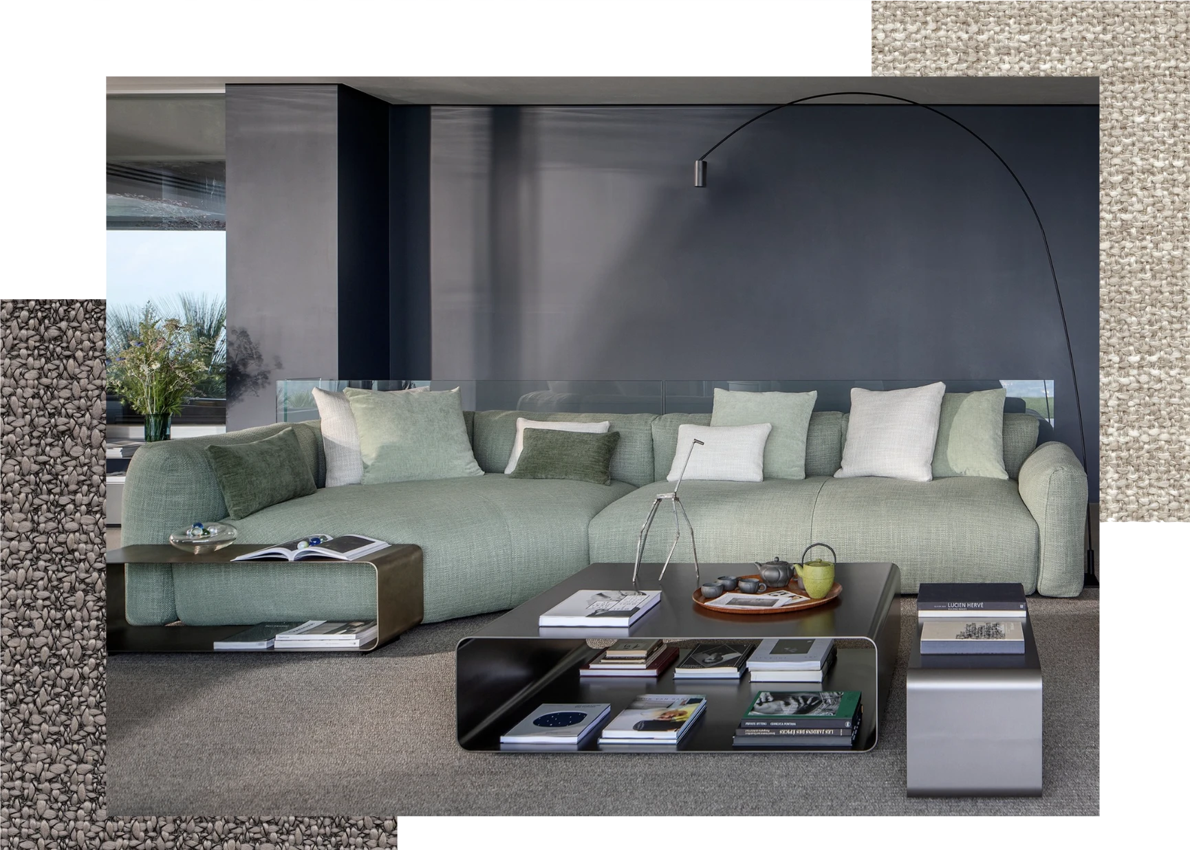 Kolekcija sjedećeg namještaja razvijena je s naglaskom na proporciji i jasnoći forme. Sofe i fotelje oblikovane su kao stabilne, arhitektonske prisutnosti unutar prostora, s konstrukcijom koja osigurava trajnost i udobrnost.