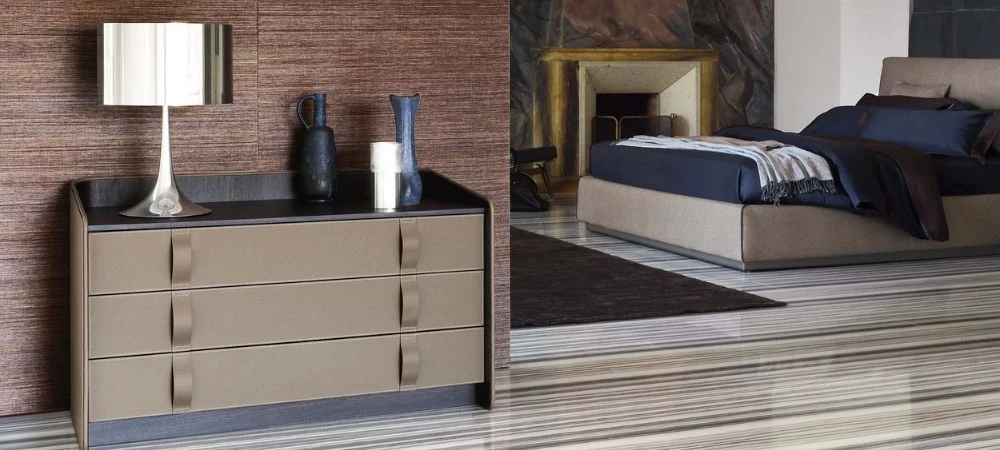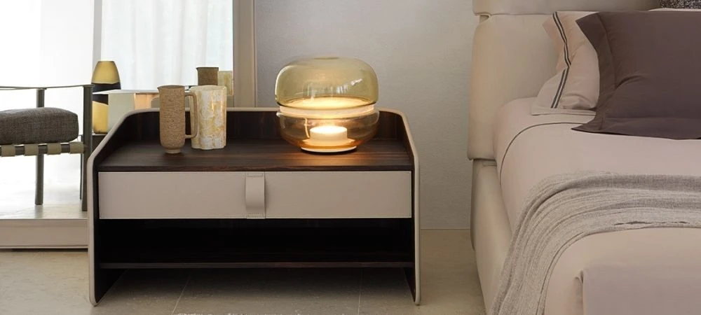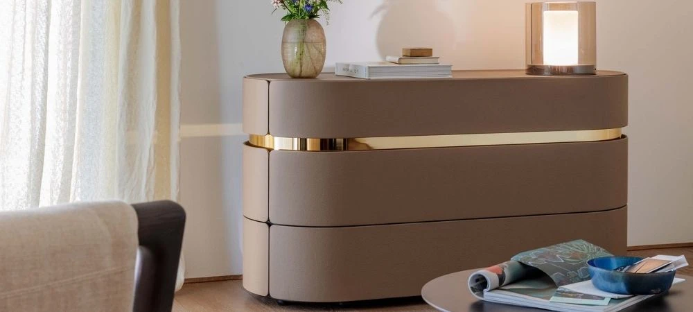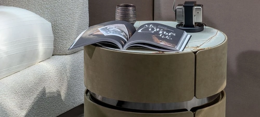 Unutarnji elementi kolekcije nadovezuju se na osnovne komade kroz istu dosljednost dizajna i materijala. Ormarići, noćni ormarići i stolići oblikovani su s pažnjom prema proporciji i detalju, stvarajući uravnotežen odnos između praktične funkcije i estetske čistoće.